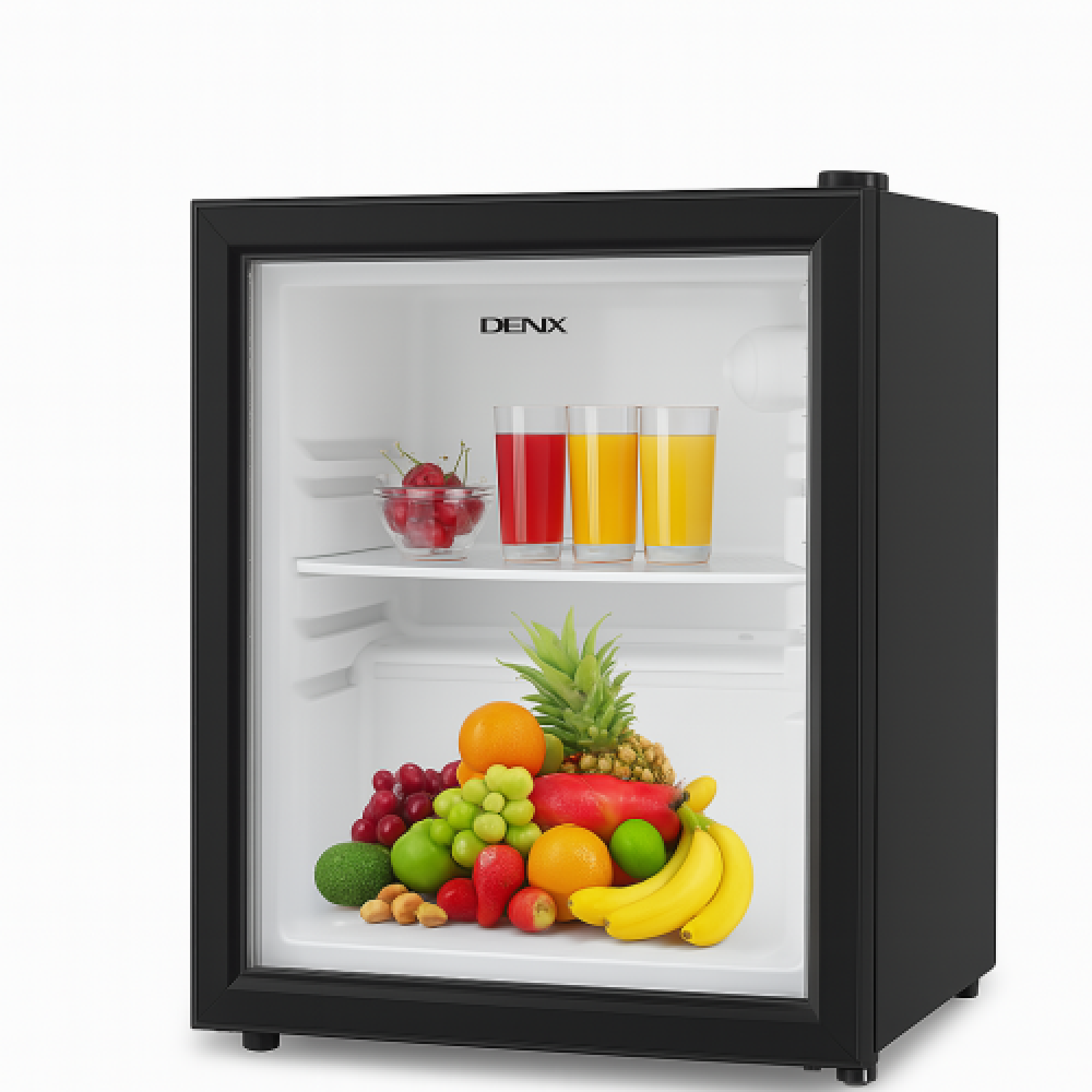 هذه ثلاجة صغيرة من ماركة DENX بتصميم أنيق وحديث، مثالية للاستخدام الشخصي في المنزل، المكتب او في الغرف الفندقية. تتميز بباب زجاجي شفاف يسمح لك برؤية المحتويات بوضوح دون الحاجة لفتح الباب، مما يضيف لمسة جمالية ويوفر في استهلاك الطاقة