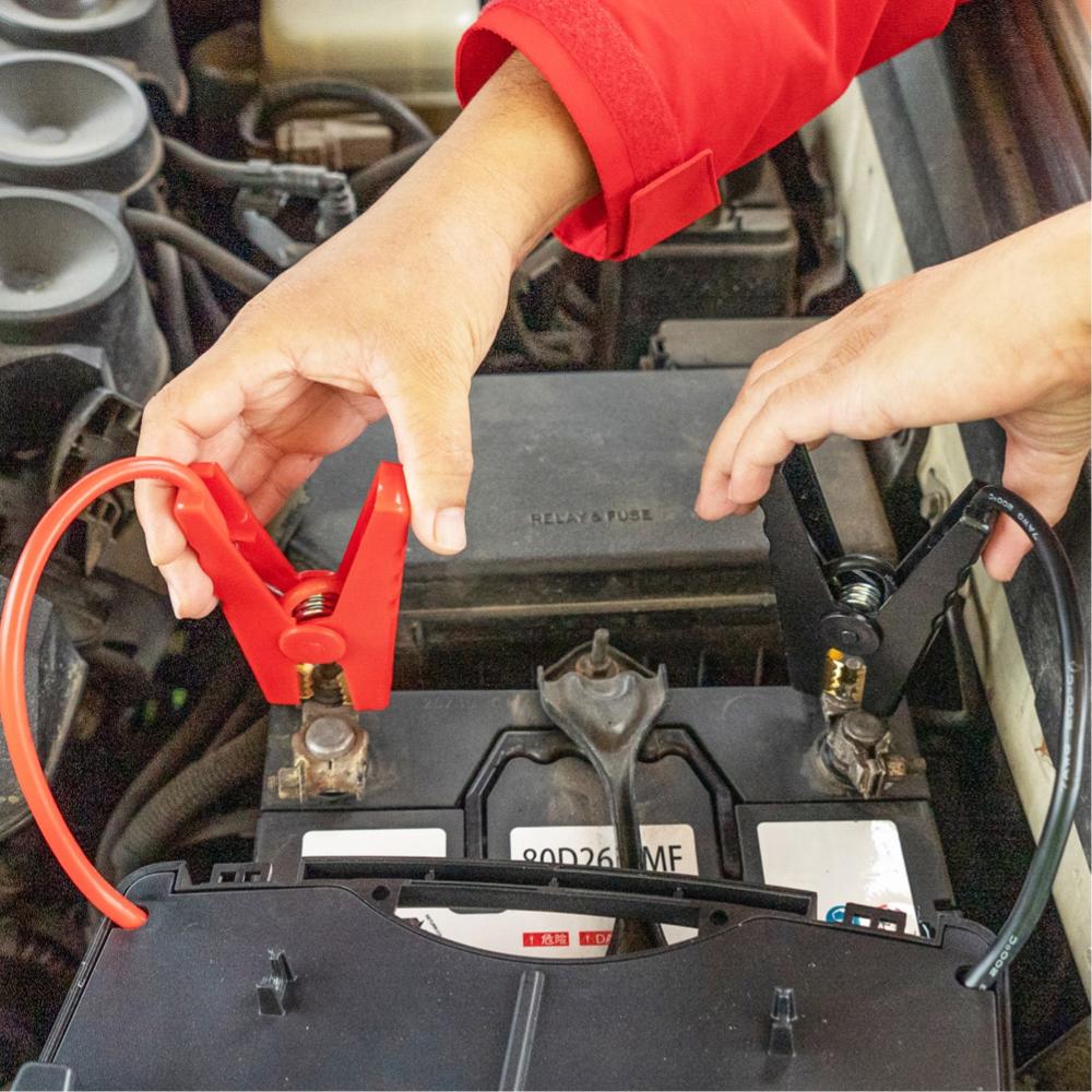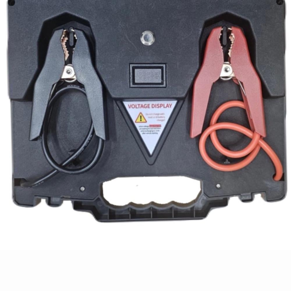 - إذا كانت بطارية سيارتك فارغة تمامًا (0 فولت) → تحتاج توصيل الجهاز ببطارية سيارة أخرى عبر الكيابل ليأخذ الشحنة الأولية ثم يشغل سيارتك عبر البطاريات المساعدة الصغيرة .