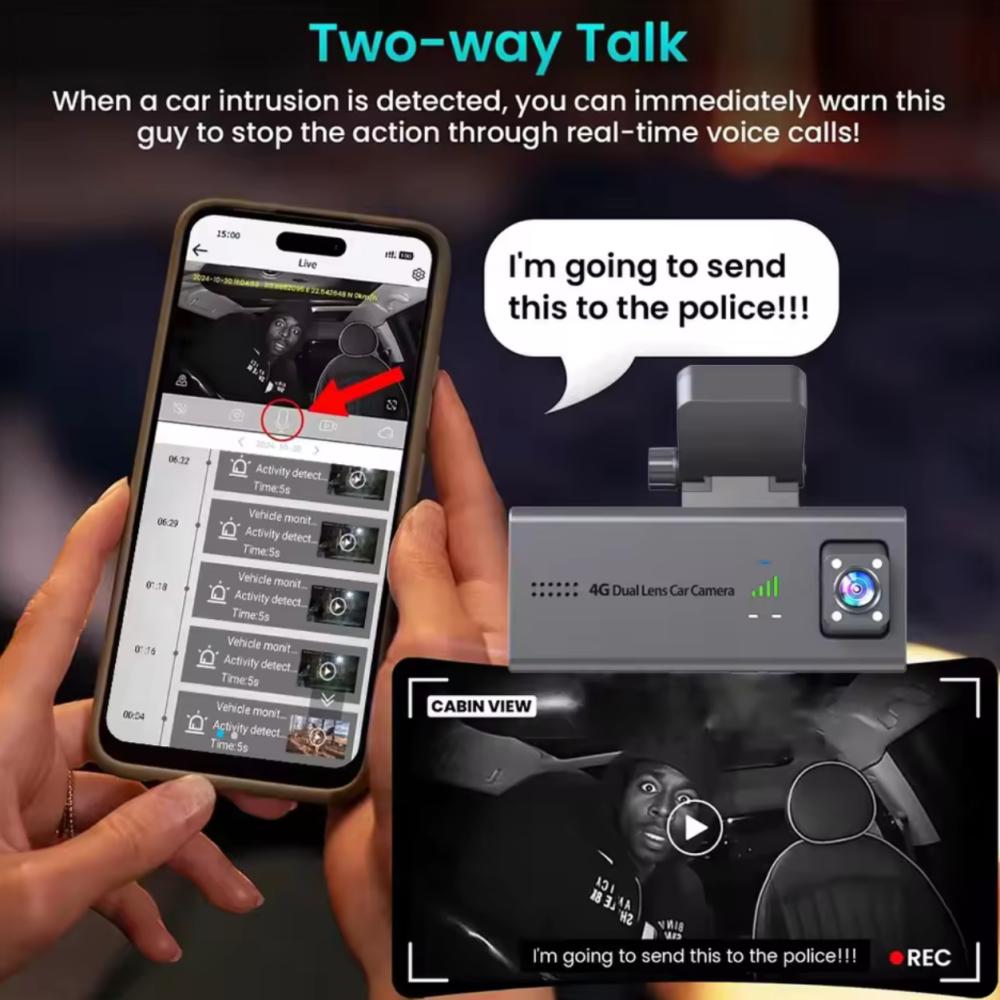احمِ سيارتك وسجل كل لحظة على الطريق مع كاميرا المراقبة الذكية 4G بعدستين.