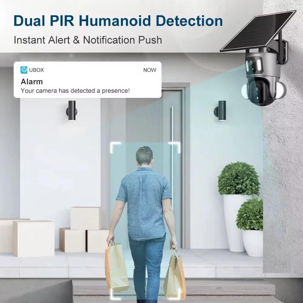 كاميرا طاقة شمسية اصدار S20 بدقة 8 ميقا بكسل بعدستين ثابتة و متحركة: هذه الكاميرا تأتي مع عدسة واسعة ثابتة وعدسة متحركة زوم 20X. تعمل على شريحة بيانات إنترنت وتدعم بتقريب بصري حقيقي وتتبع الحركة للإشخاص بالإضافة إلى رؤية ليلية واضحة