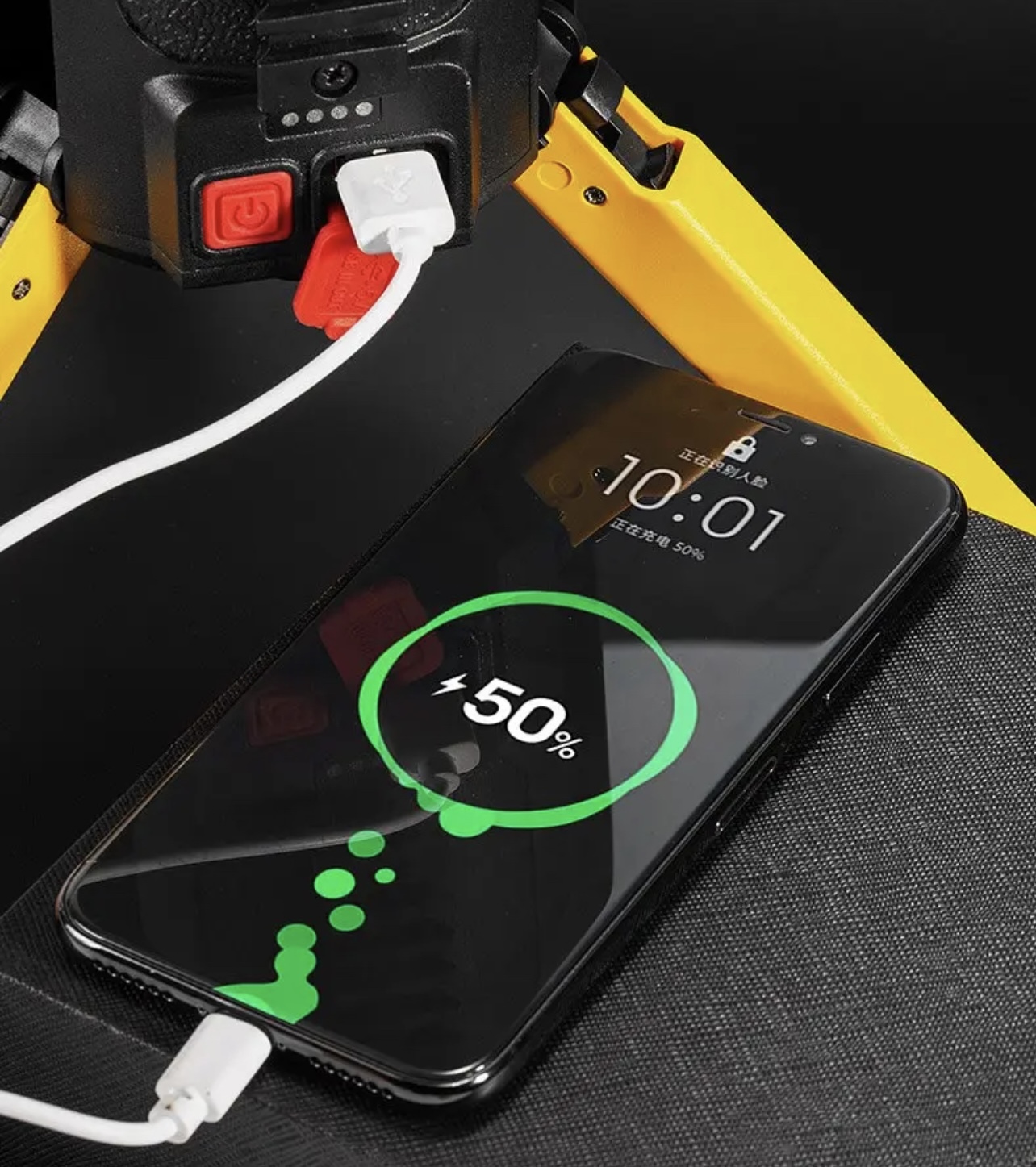 كشاف رحلات وجلسات متعدد الاستخدام بإضاءة قوية ذات نطاق واسع وبطارية مدمجة بسعة 4500 مللي امبير في الساعة، قابلة لإعادة الشحن تايب سي، مما يمكن أن يدوم الشحن الكامل لمدة اكثر من 4 ساعات . و مؤشر البطارية المكون من 4 مستويات