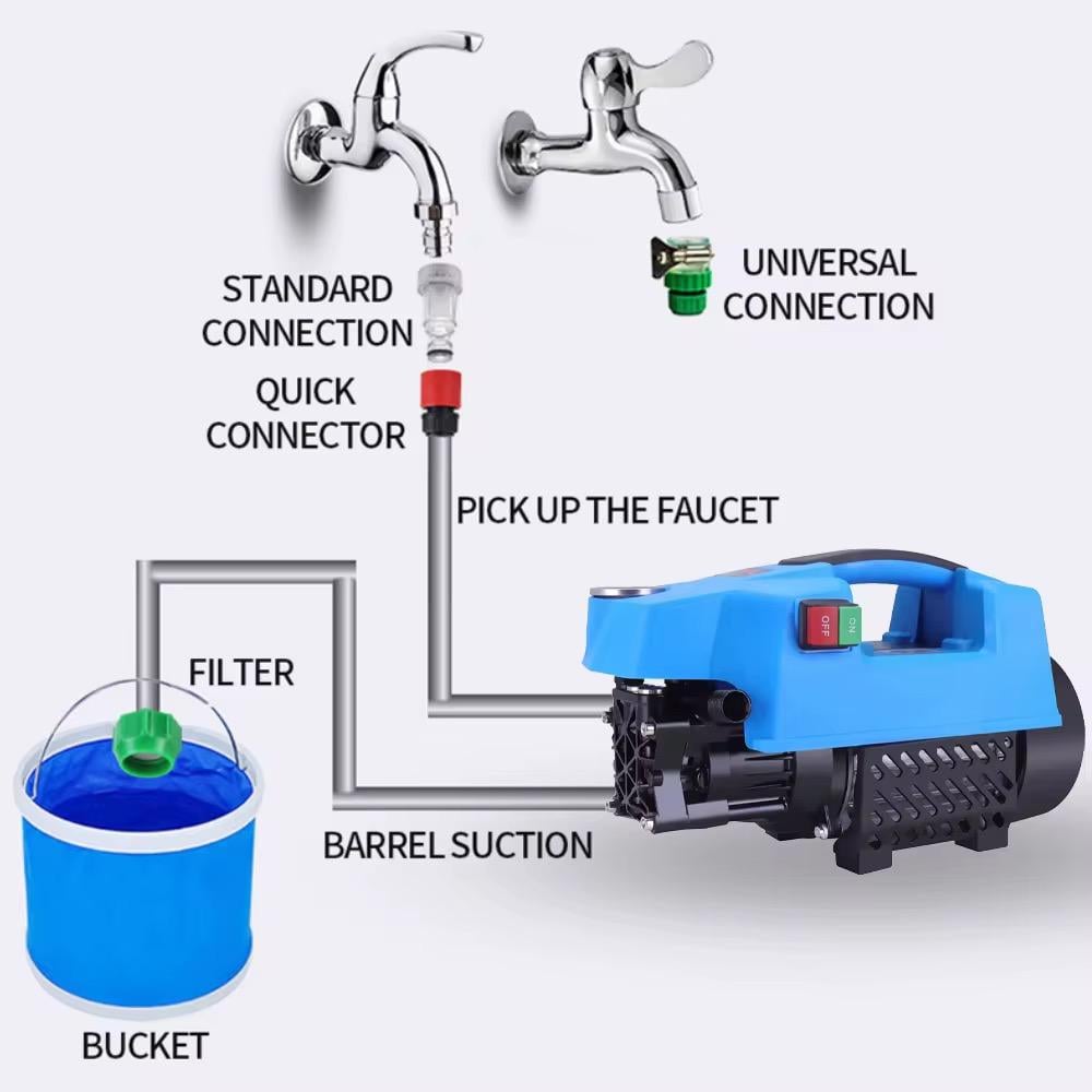 مضخة غسيل بضغط عالي بقوة 1800 واط مصنوعة من مواد ذات جودة عالية بتقنية و تعمل بطريقتين الشفط من السطل او توصيل بالصنبور مباشرة بنفس القوة حتى في الشفط ومناسبة لغسيل السيارات والاحواش وترويش الحيوانات ورش المزروعات وغسيل والمكيفات سهلة الحمل والتنقل بها اثناء الغسيل